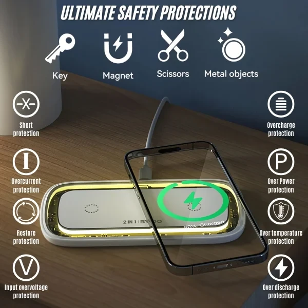 • 2-in-1 Functionality: Combines fast 30W wireless charging with a soft, built-in night light.
