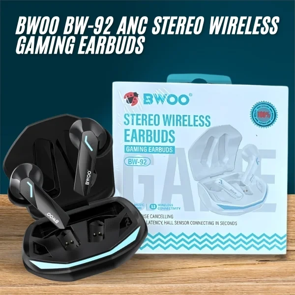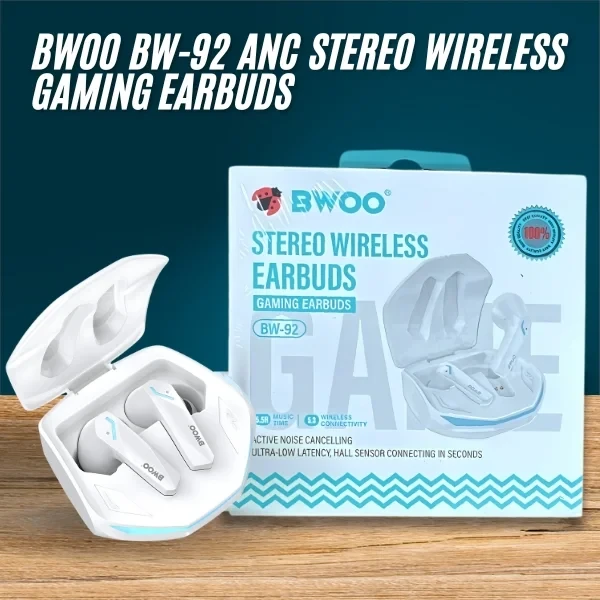 BWOO BW-92 ANC Stereo Wireless Gaming Earbuds Sports headset | Hall Sensor White