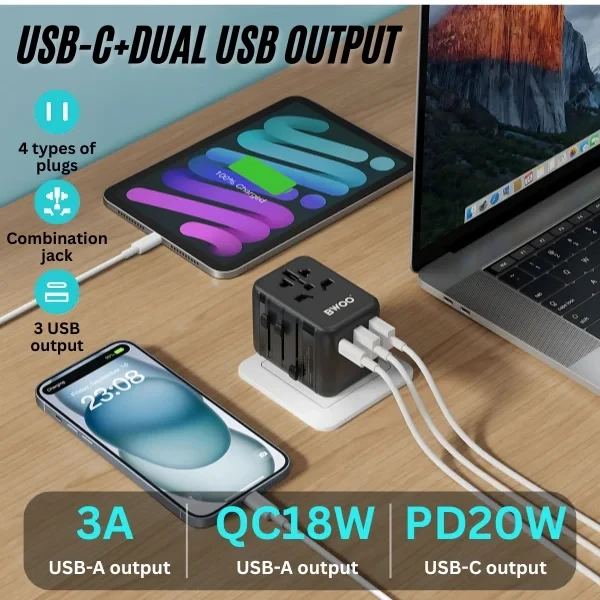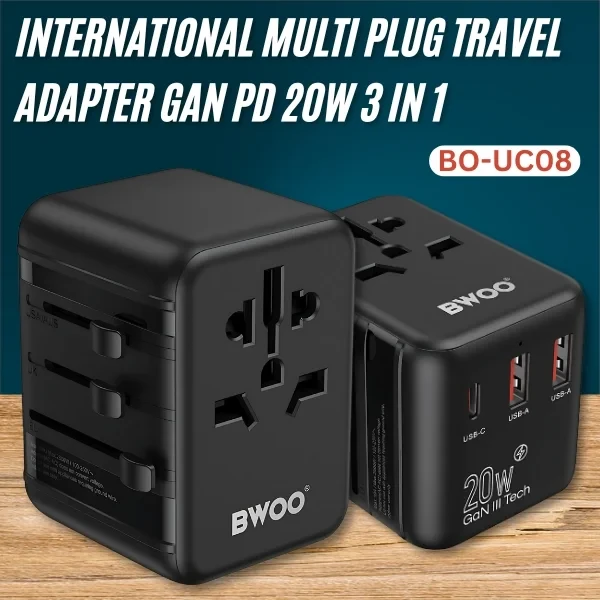 BWOO New Arrivals UK EU AU US Plug Multifunction Chargers PD 20W Black