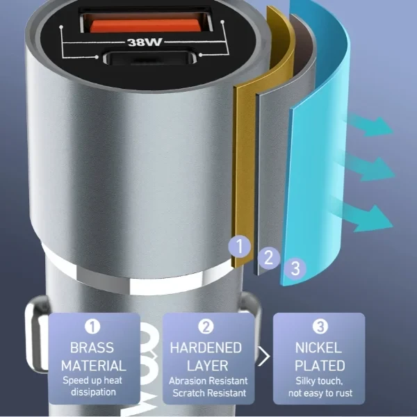 The BWOO BO-CC68 is a compact and efficient car charger designed to keep your devices powered on the go. It features dual USB ports—USB-A and USB-C—delivering a combined output of up to 38W, ensuring fast charging for smartphones and tablets. Built with a fireproof PC material and ABS, it offers durability and safety. The charger supports multiple fast-charging protocols, including PD and QC3.0, and is compatible with a wide range of devices. Its sleek design makes it a practical addition to any vehicle.