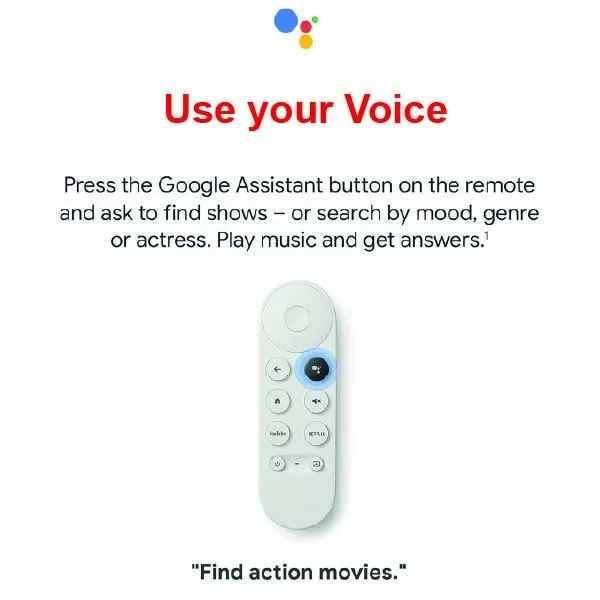 Voice Control via Mobile Device: Use your smartphone or Google Assistant-enabled device to search for content, launch apps, and control playback on Google Chromecast HD.