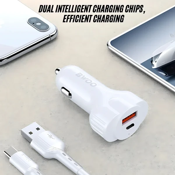 The Dual USB Port Fast Car Charger 30W delivers high-speed charging for two devices simultaneously. With a compact and sleek design, it fits seamlessly into any car’s power socket. Equipped with smart IC technology, it ensures safe charging by protecting against overcurrent, overheating, and overcharging. Ideal for smartphones, tablets, and other USB-powered devices.