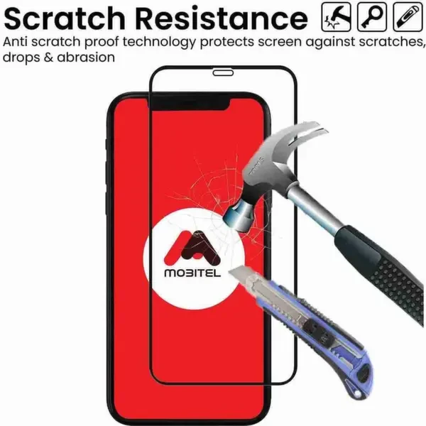 Mobitel's full-coverage tempered glass screen protector takes the worry out of drops and bumps. Engineered for shock absorption, it disperses impact force to prevent your phone's screen from shattering. Enjoy the peace of mind that comes with superior protection, all while maintaining a sleek, edge-to-edge design.