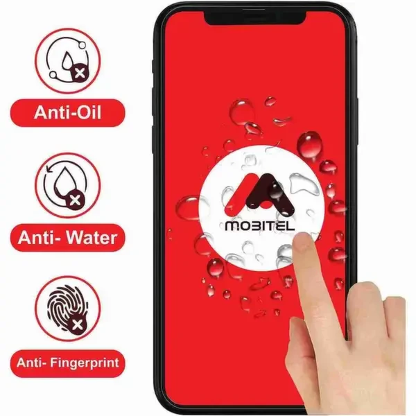 Mobitel's full-coverage tempered glass screen protector utilizes a multi-layer construction for enhanced protection. Each layer plays a specific role, from absorbing impact and resisting scratches to maintaining a clear, responsive touch experience. Enjoy the peace of mind that comes with a screen protector built to safeguard your phone from everyday hazards.