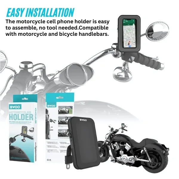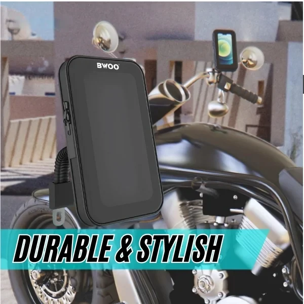 Securely mounts to motorcycle handlebars for easy phone access while riding