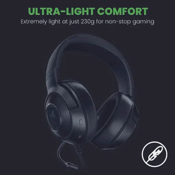 Razer Kraken X Lite - Corded Ultralight Gaming-Headset with Surround Sound, Lightweight Black