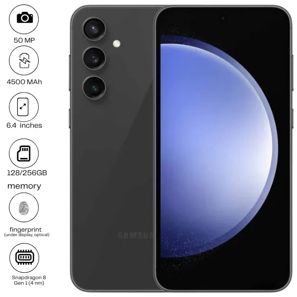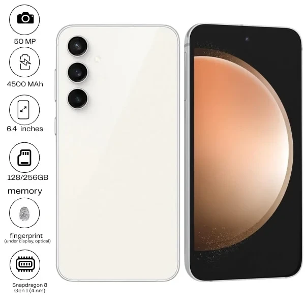 The Samsung Galaxy S23 FE features a 6.4-inch 1080x2340 pixel display for vibrant visuals and a 50MP camera with 8K video recording. Powered by a 4500mAh battery, it supports 25W wired and 10W wireless charging for efficient power. A perfect blend of performance and style.
