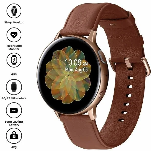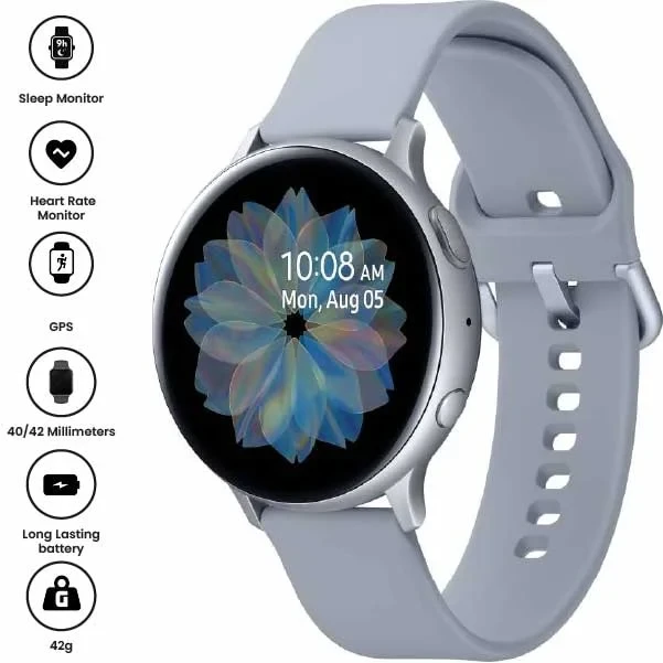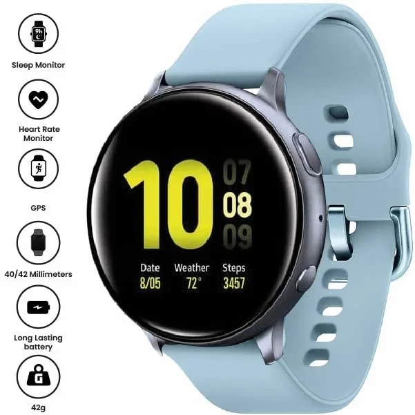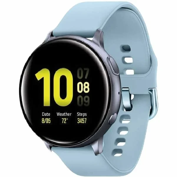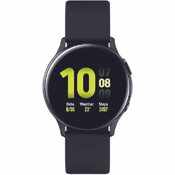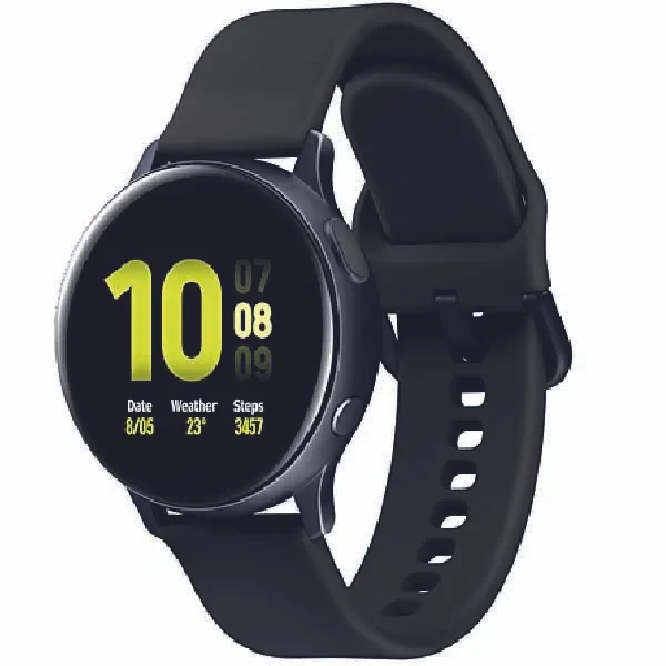 The Samsung Galaxy Watch Active2 (44mm, Bluetooth) in Aqua Black is a sleek, lightweight smartwatch designed for fitness and wellness tracking. It features a vibrant 1.4-inch Super AMOLED display, advanced sleep monitoring, heart rate tracking, and built-in GPS. With up to 2 days of battery life and wireless charging, it's perfect for staying connected and healthy on the go.