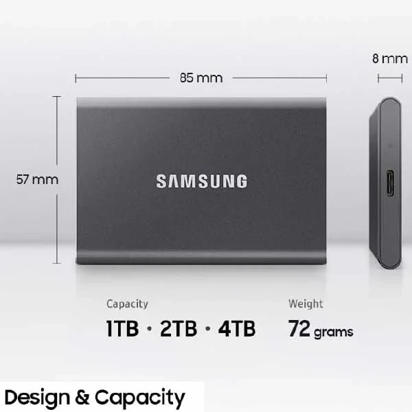 Compact and portable design, about the size of a credit card, with a durable aluminum unibody that is shock-resistant up to 6 feet.