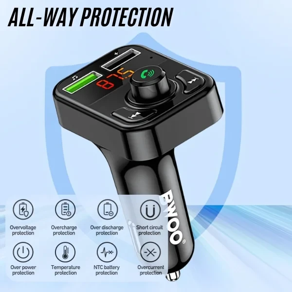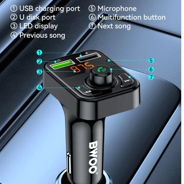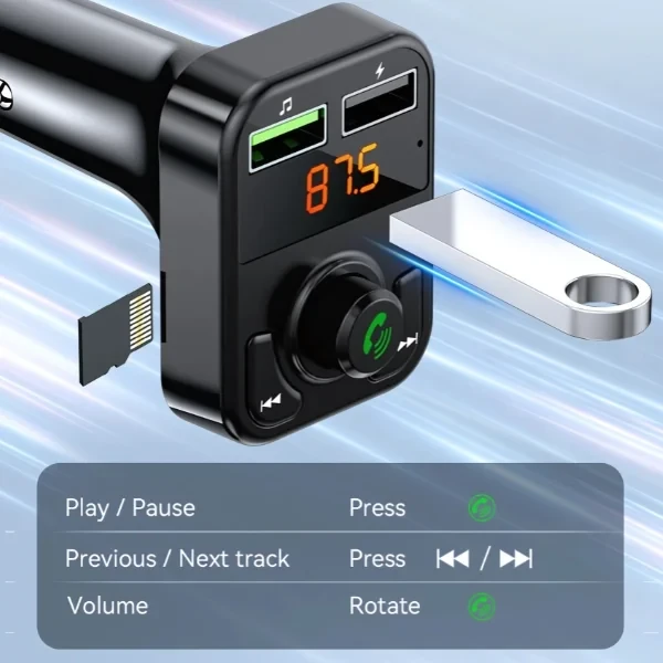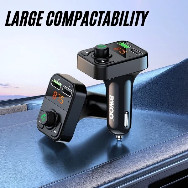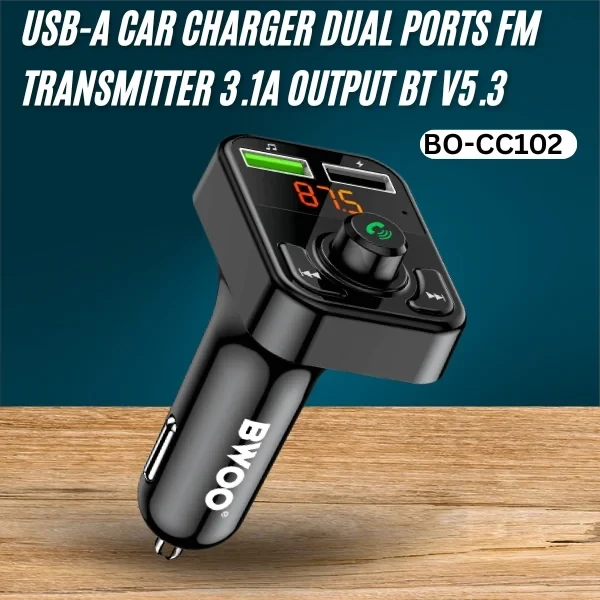 USB-A Car Charger dual ports FM Transmitter 3.1A output BT V5.3 Black