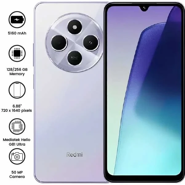 The Xiaomi Redmi 14C is a feature-packed smartphone with 128GB storage, a 6.88" HD+ display (720x1640 pixels), and a powerful 50MP rear camera capable of 1080p video recording. Powered by a 5160mAh battery with 18W fast charging, it’s designed for seamless multitasking and capturing stunning photos on the go.